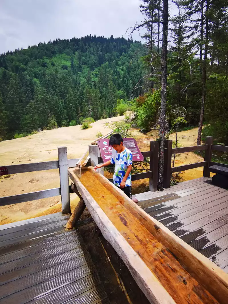 In the morning, I went to the Cherry Creative Kitchen next door for breakfast, and the boss's breakfast was not bad, with rice porridge and cakes, just right. Due to the weather being a bit cloudy today, the weather forecast may be rainy, considering the weather and high reaction problems, we temporarily decided to adjust the itinerary, abandon the itinerary of the Huanglong Scenic Area, and turn to the Nenensang Cuo, also known as the Little Huanglong Xiaojiuzhai, also known as the Immortal Pool, which means the place where the fairy bathes, this is a niche attraction, although it is only 55 kilometers away from the Jiuzhaigou Scenic Area, but the mountain road is N turned. It takes 1.5 hours to drive, high mountain cliffs, fog, and relatively troublesome to reach, so there are very few tourists, especially group tourists, almost none; There is a calcification pool of the same style as Huanglong, the altitude is much lower than that of Huanglong, there will be no high reaction, the scenic spot is not large, there are few people and quiet, there is a feeling of being in a paradise; here basically have to rely on walking, about 2-3 hours, a little physically exhausting, the lotus terrace color pool is the best attraction in the entire scenic spot, like a fairyland.