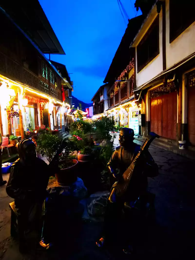 In the afternoon, the Nenensang Cuo Scenic Area came out, drove about 130 kilometers, and drove about 3 hours to the ancient city of Songzhou, the ancient town of the original tea horse road, which is now the ancient city of Songpan, which is the humanistic responsibility of Songpan County, this ancient city that has gone through thousands of years with amazing inclusiveness, accommodating people of Tibet, Qiang, Hui, Han and other ethnic groups to live here, here is the gateway to western Sichuan, the ancient city is 2850 meters above sea level, known as the "ancient city of the plateau", when we arrived, it was late, in the night tour of the ancient city with a little coolness, the night view of the ancient city is still good.For dinner, we chose the famous dairy beef restaurant in the ancient city, the dairy beef hot pot here is very good, the tomato pot base we ordered is a must, the soup is very good, a meal of 137 yuan, cost-effective, the grilled yak skewers in front of their house are very good, you must try it.