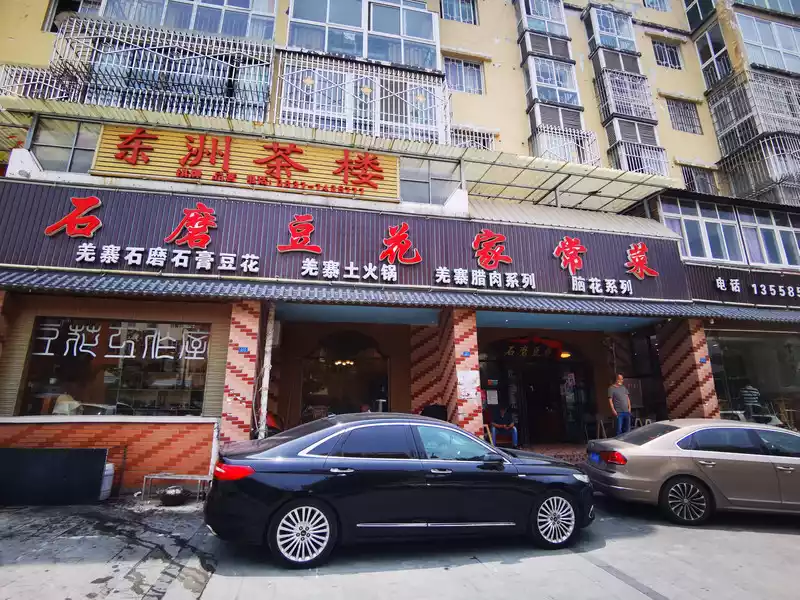After passing Diexi Haizi, driving about 60 kilometers, driving for more than 1 hour to Mao County, passing by the ancient Qiang City scenic spot in China, considering that it is still necessary to rush back to Chengdu and most of the ancient Qiang City scenic spots in China are newly built antique man-made scenery after the earthquake, so I took a photo and left; At noon, we had lunch at Maoxian County's stone-ground tofu pudding home-cooked food, this store has a large portion, don't order too much, we ordered three dishes to support and not finish eating, the price is not expensive, a total cost of 106 yuan.