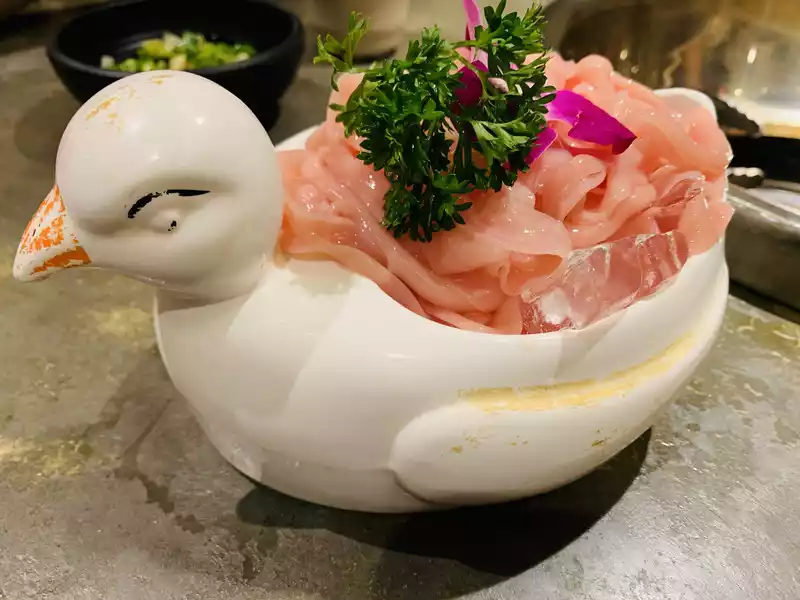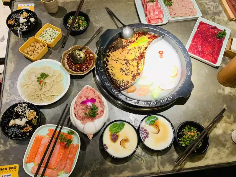 rises Leaving Mao County, driving past Wenchuan People's Hospital to do a nucleic acid test first, continue to drive to Chengdu, arrive at the car rental point at about 18 o'clock, and after a few days of self-driving, take a taxi to the Chengdu Edge Time Hotel to check in. For dinner, under the recommendation of the homestay owner Taiban, we went to Chengdu Yuzong Laozao Hot Pot not far from the homestay; Since we have come to Chengdu, we must try the authentic Sichuan hot pot, but with our ability to resist spiciness, we still ordered the mandarin duck pot weakly, and as a result, most of our ingredients were put into the non-spicy pot.The ingredients of Chengdu Yuzong old stove hot pot are still good, I like the blood the most, a four-person set meal is 188 yuan, and the price is moderate.