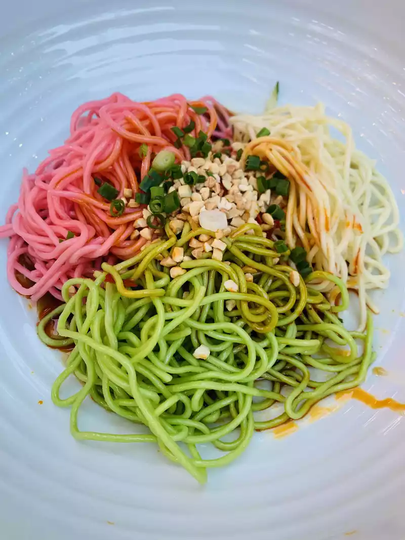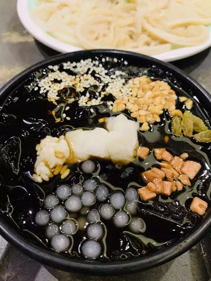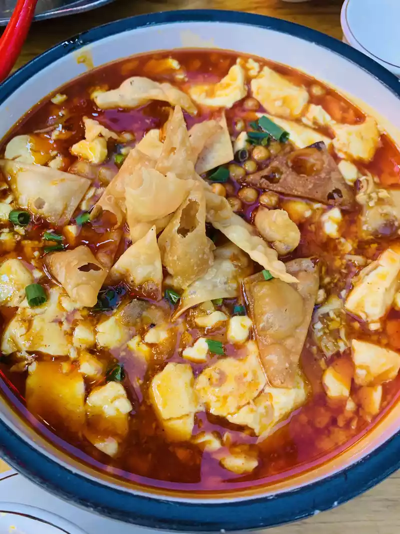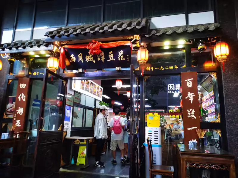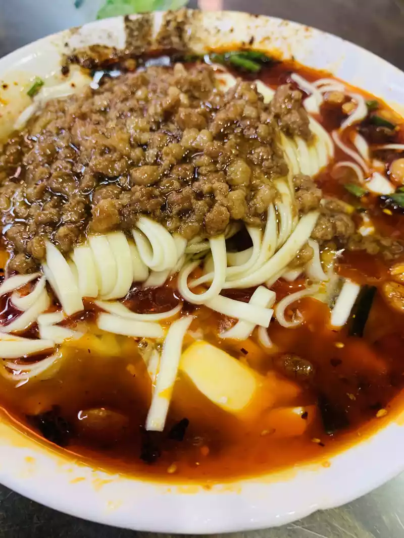 From Granny Ye's bowl chicken, the Sichuan health code still has a pop-up window, the weather is a little sultry, so we went back to the hotel to rest, about 17 o'clock in the afternoon, relatively not hot, The negative nucleic acid report also came out, and there was no pop-up window for the Sichuan health code, so we could go out for a walk.Walk to Xiyue City Tan Douhua for dinner, a traditional old store, very special tofu pudding cooking method, ordered tofu pudding noodles, sweet water noodles, ice crushed tofu pudding, only ordered one serving, 30 yuan, cost-effective, as a dessert to taste the taste, and then you can eat some other delicacies.