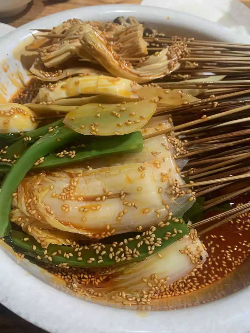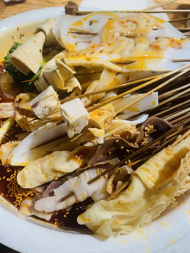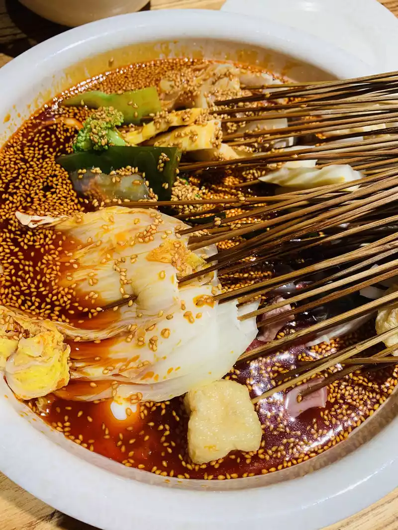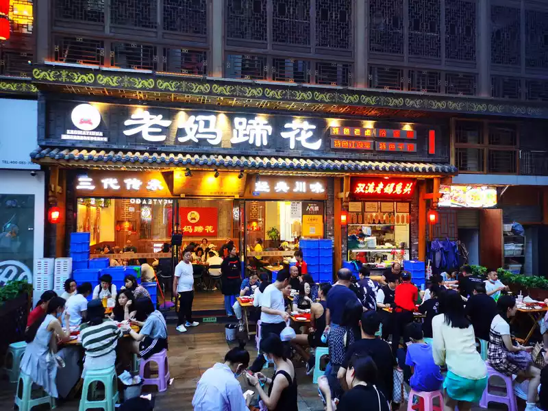 Because of waiting for the nucleic acid results, today's itinerary is relatively easy, sleep until you wake up naturally, the nucleic acid results have not yet come out, check out of the hotel, take a taxi to the hotel in Chengdu, although there is a pop-up window in the Sichuan code, but you can stay in hotels and restaurants to eat, we have checked in the hotel check-in procedures in Chengdu at about 11 o'clock, and the nucleic acid has not yet come out; Plan to eat Granny Ye Bobo Chicken for lunch, walk from the hotel, pass Chunxi Road, IFS, Taikoo Li, you can only see, there is a pop-up code in addition to Chunxi Road can also enter, the mall is not entered, to Granny Ye Bobo Chicken to eat first, I used to look at the name and thought it was a chicken practice, but I actually understood that it was a skewer, worthy of being a very famous restaurant, there are a lot of people queuing up to eat, but the turnover is also quite fast, delicious, and the cost performance is also good.