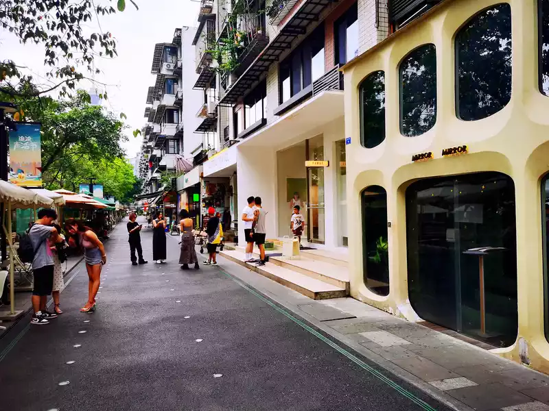 There are many restaurants here, and there are cultural and creative markets in the evening, many people on the road are drinking and chatting by the river, and they will meet a lot of street photographers, from time to time some photographers with long guns and short cannons press the shutter to the handsome men and beauties in the past, and the handsome men and beauties are also naturally photographed, this is a young and fashionable neighborhood, that is, Chengdu is too hot, sitting by the river really admire their heat resistance, let's go back to the homestay to blow the air conditioner.