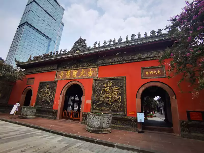In the afternoon, I came out of the memory of the eastern suburbs and went to Wenshu Monastery; Wenshu Monastery, the first of the four major Zen forests in the middle and lower reaches of the Yangtze River in China, is full of incense and is said to be super effective; Wenshu Monastery is an excellent place for blockbusters on the red wall, and basically major travel bloggers and experts will come here to show off their shooting skills; After visiting Wenshu Monastery, you can have a pint of Zen tea in the Wenshu Monastery Xiangyuan next door, if you are interested, you can copy the scriptures, spend the sultry afternoon leisurely, and you can also eat vegetarian food in the fragrant garden at night, the vegetarian hot pot is really good, self-service, a variety of different soups, and a variety of vegetarian products, will make you feast, our three small hot pots are only 168 yuan.
