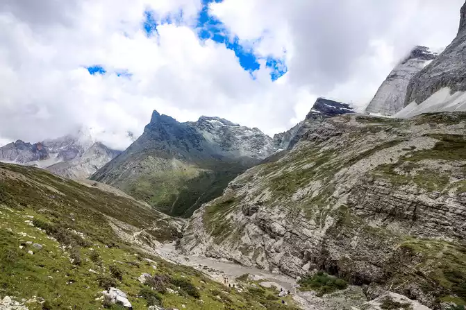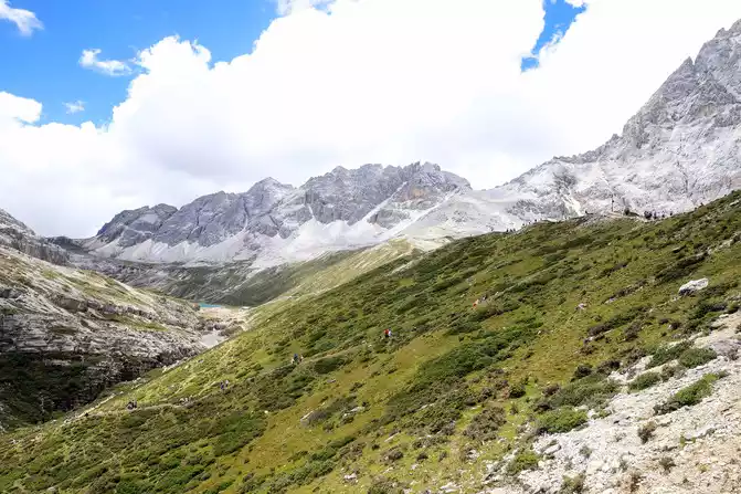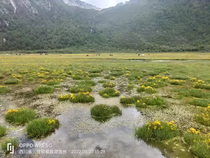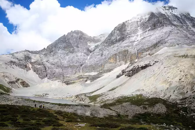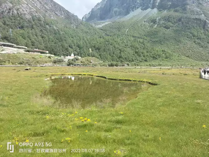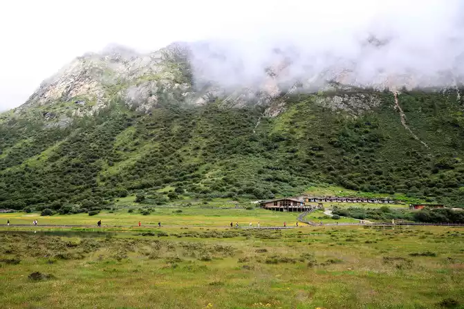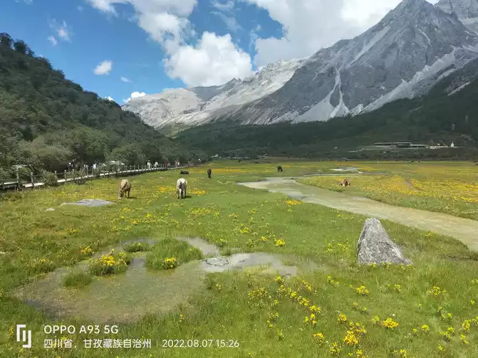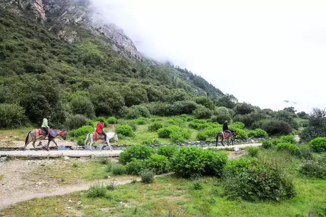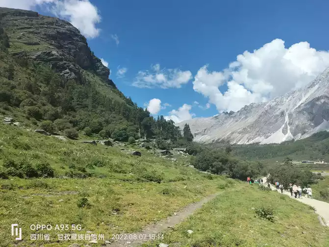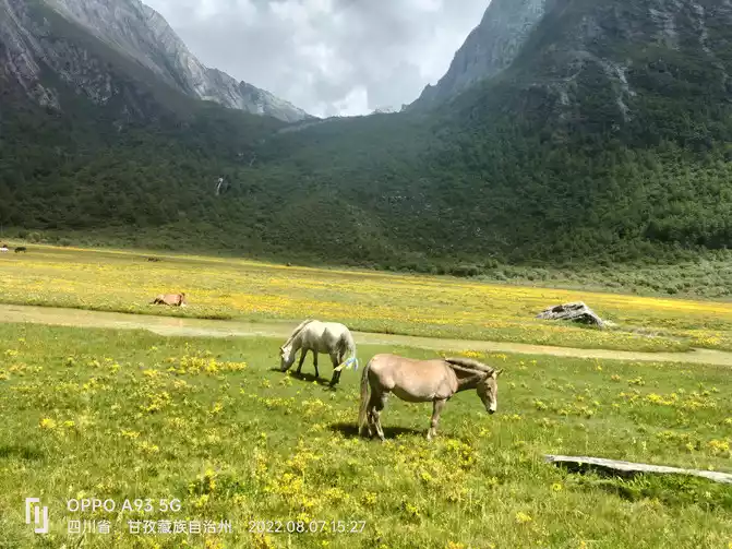 We set off from Luorong Cattle Farm at about 9 a.m. to the Milk Sea and the Five Colors Sea, and the first half of the journey was basically at the foot of the mountain at an altitude of about 4,100 meters along the trail, without a big slope, and it was relatively easy to walk.