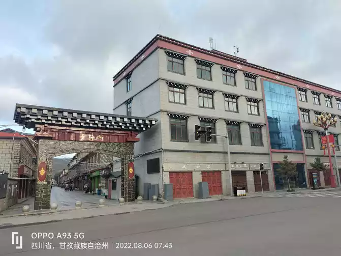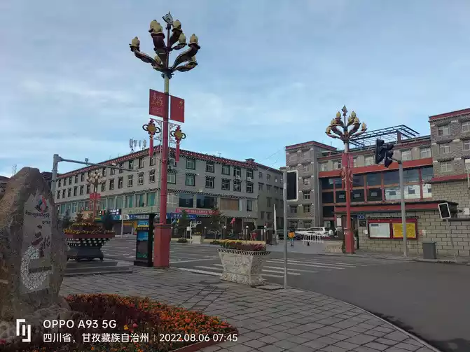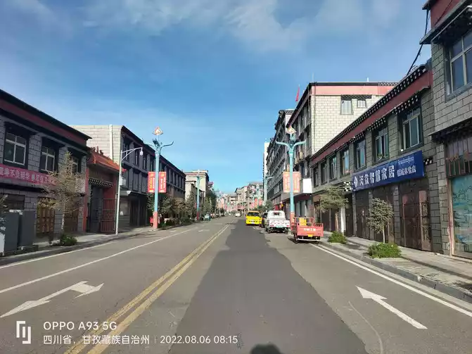 (August) 6 a.m. at 7 a.m. to get up and pack up the luggage, take the camera out to sweep the streets and have breakfast, the streets of Daocheng County are spacious, tidy and decorated uniformly, because it is still early, there are not many pedestrians on the streets, we live near the Snow Mountain Square in the city center. While walking, I walked into a neat-looking breakfast shop and ate a bowl of beef noodles, a large bowl of 15 yuan, and the price was relatively moderate. There is a nucleic acid testing point in the Snow Mountain Square, I went to consult the epidemic prevention policy of Sichuan Province, and learned that some scenic spots (including Aden) only recognize the 48-hour nucleic acid result, for the sake of insurance, I immediately made one, and suggested that the whole group also do it once (nucleic acid testing in Sichuan Province, except for entering Sichuan Province to get off the highway in Enyang, other places are 3.5 yuan per person per time).