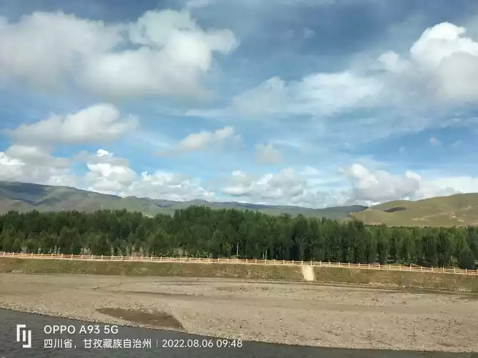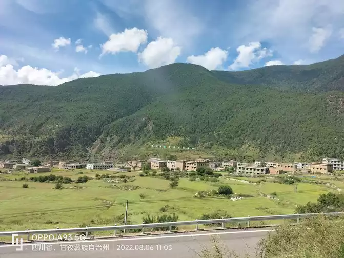 On the way to Aden, the road conditions are good, the vision is wide, the blue sky and white clouds, the green mountains and green waters, the plateau pastures, and the air is fresh.