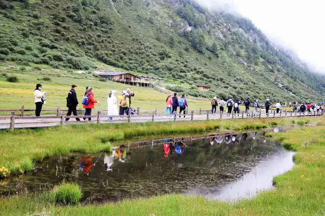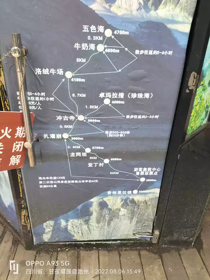 From Luorong Cattle Farm to Milk Sea and Five-Color Sea, the schematic map of the scenic route is marked as 5 kilometers, but this 5 kilometers is a 5-kilometer gradual ascent from an altitude of 4,100 meters to 4,700 meters, and I also carry a backpack containing two cameras and some spare parts, food and water weighing more than ten pounds, and I also have to capture the beautiful scenery for filming, and the difficulty of its march can be imagined!