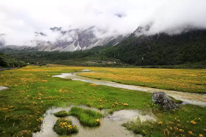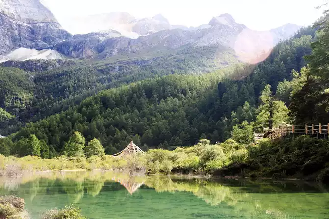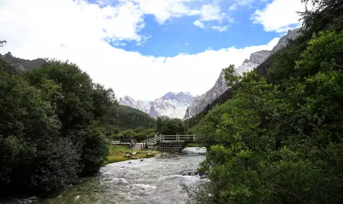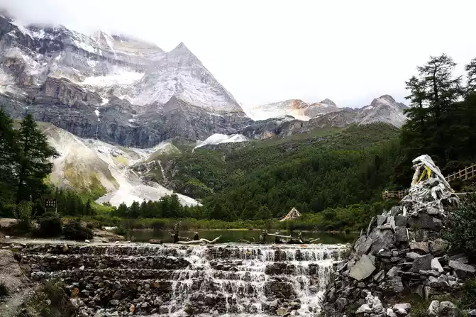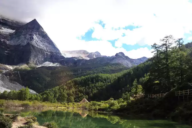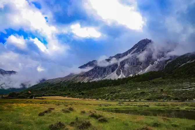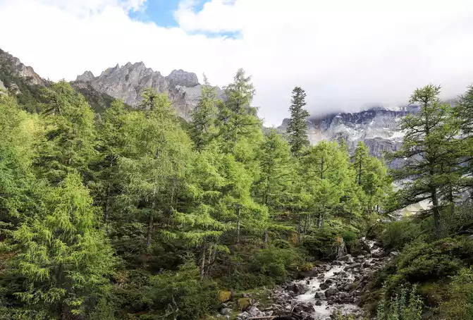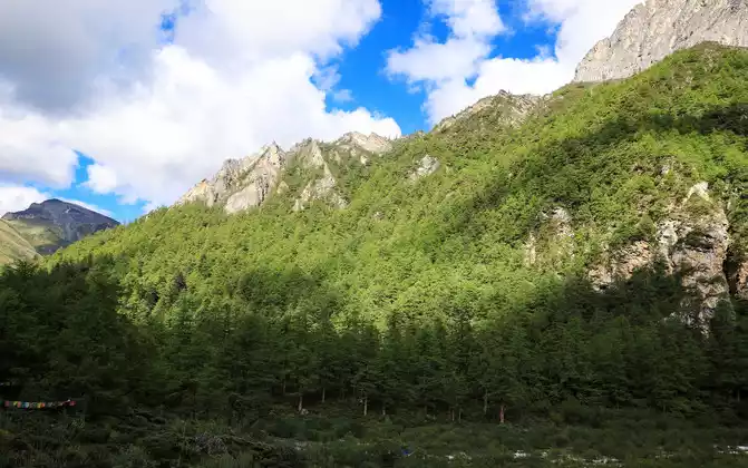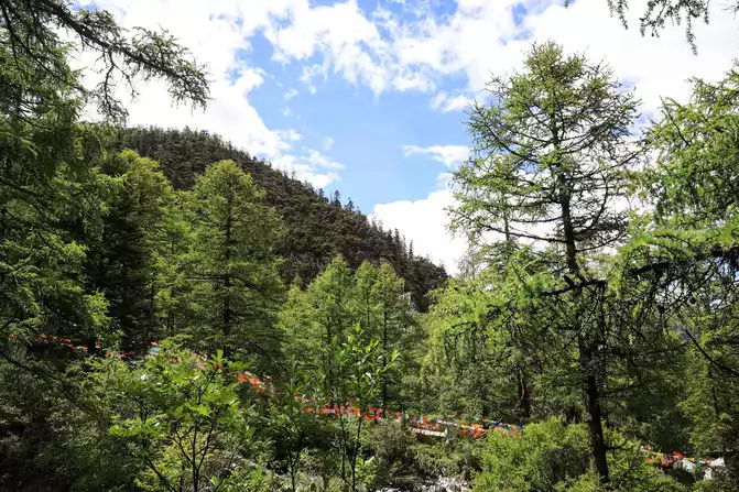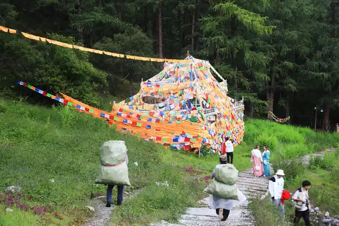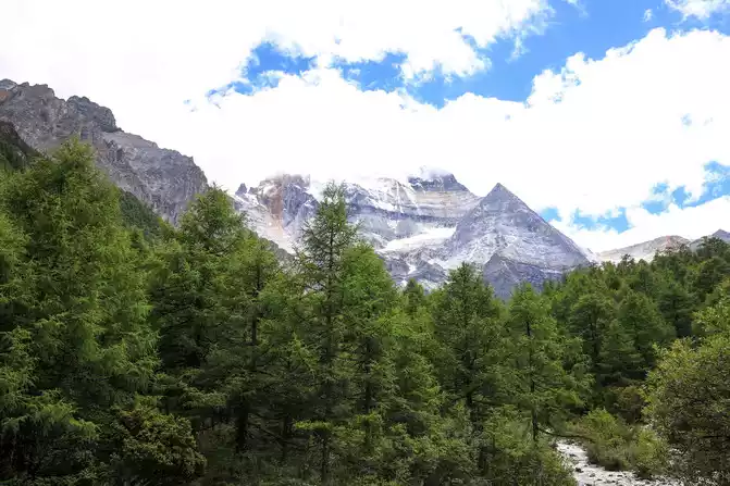 Luorong Cattle Farm is one of the most famous accommodation places in Aden Scenic Area, and it is also the starting point for walking to the Milk Sea and the Five Colors Sea (about 3.5 hours on a one-sided walk). Surrounded by the three sacred mountains of "Risong Kampot", the Gongga River shuttles from the pasture, the forest stream gurgles, and the pasture wooden houses complement each other, forming a primitive and charming scenery, allowing people to enter the realm of returning to simplicity. It is also backed by the three sacred mountains of Xiannairi, Yangmaiyong, and Xiano Dorji, which is a good place to watch the three snow-capped mountains. Visitors can choose to camp here or set up their own tents. Snowy peaks, forests, meadows, streams, lakes, waterfalls and ranch cabins complement each other. In addition, Xiaozhuan Shenshan Xiannai Ri also passes through here (starting from Chonggu Temple, going around Xiannai Ri via Luorong Cattle Farm, the whole journey is 20 kilometers).
