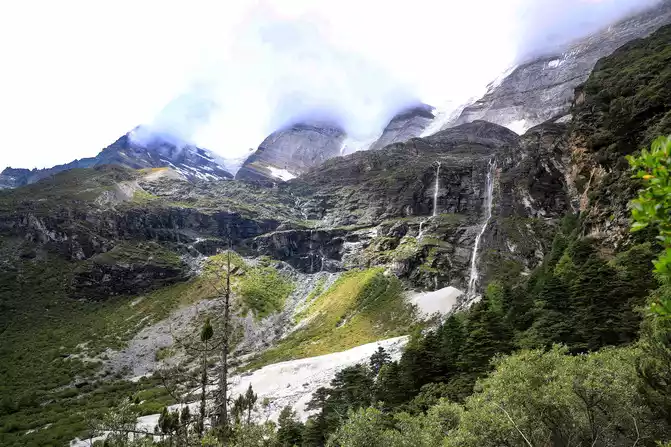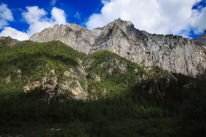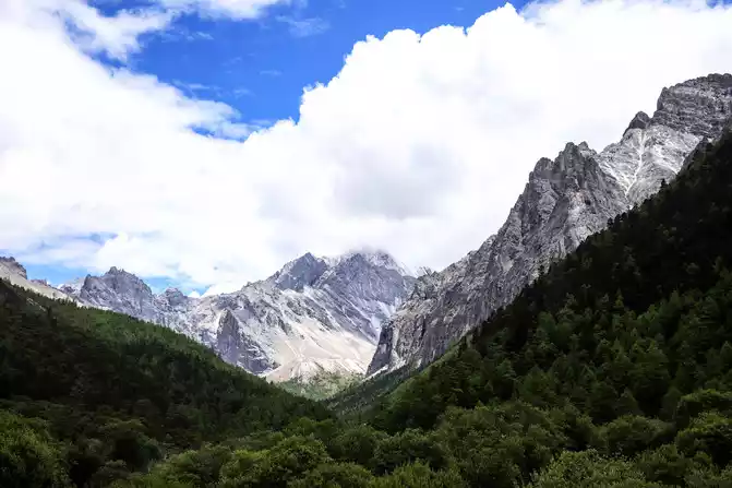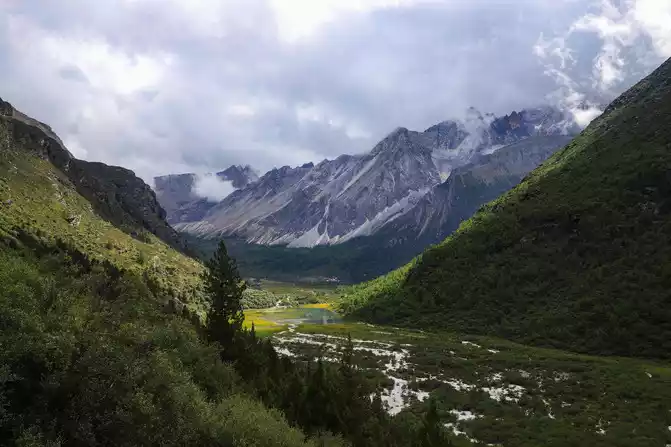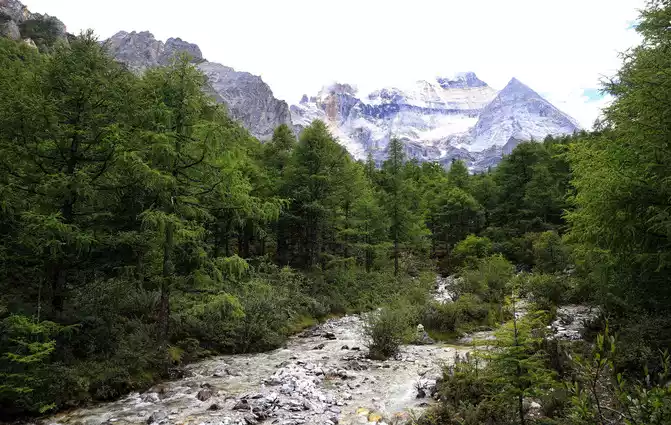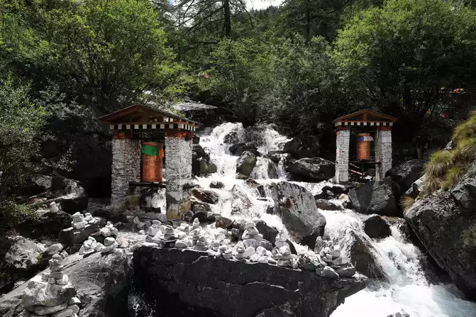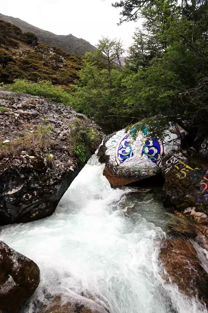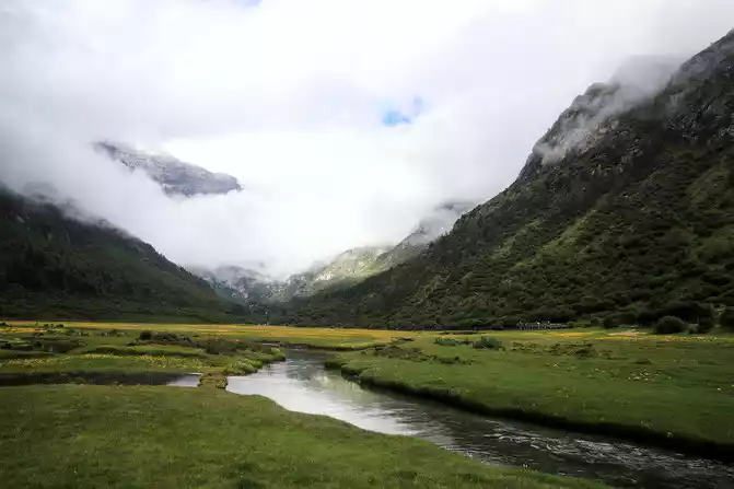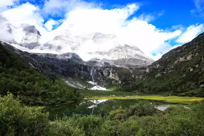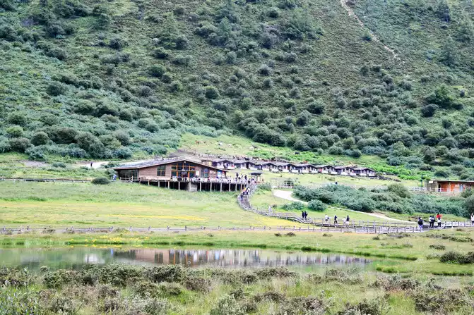 Luorong Cattle Farm is one of the most famous accommodation places in Aden Scenic Area, and it is also the starting point for walking to the Milk Sea and the Five Colors Sea (about 3.5 hours on a one-sided walk). Surrounded by the three sacred mountains of "Risong Kampot", the Gongga River shuttles from the pasture, the forest stream gurgles, and the pasture wooden houses complement each other, forming a primitive and charming scenery, allowing people to enter the realm of returning to simplicity. It is also backed by the three sacred mountains of Xiannairi, Yangmaiyong, and Xiano Dorji, which is a good place to watch the three snow-capped mountains. Visitors can choose to camp here or set up their own tents. Snowy peaks, forests, meadows, streams, lakes, waterfalls and ranch cabins complement each other. In addition, Xiaozhuan Shenshan Xiannai Ri also passes through here (starting from Chonggu Temple, going around Xiannai Ri via Luorong Cattle Farm, the whole journey is 20 kilometers).