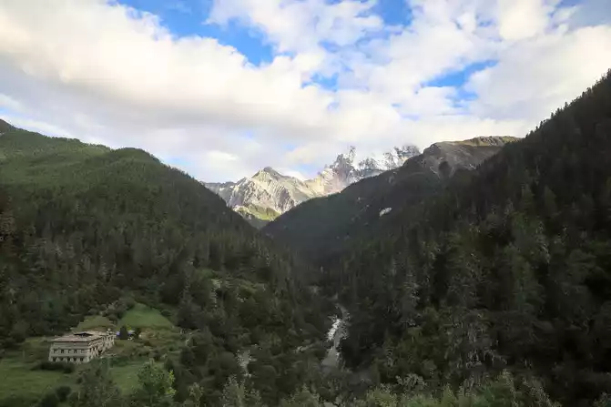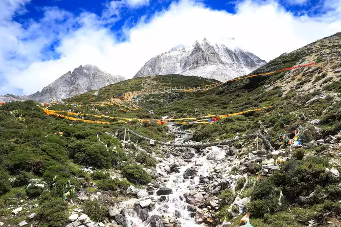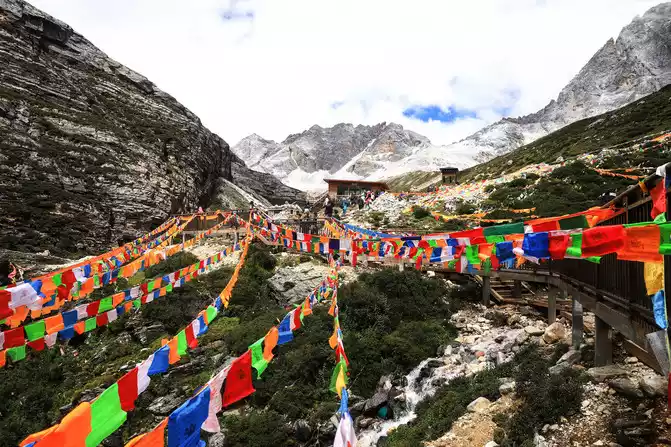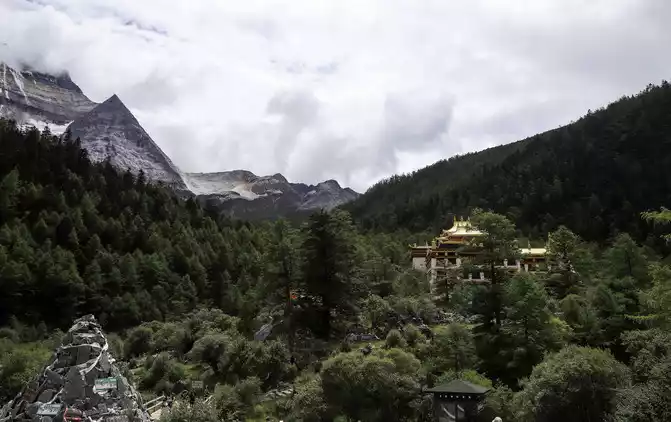 First, pass by Chongkoji Temple, which is located at the foot of Mount Sennohi at an altitude of 3,880 meters and is one of the must-visit attractions for many tourists. Chonggu Temple belongs to Gonggalangjiling Temple, and the original temple is seriously damaged, and the age of the temple can no longer be verified. Now there is a two-story house next to the old temple, the first floor is the guest room and lama's room, and the second floor is the scripture hall, where Zhaba chants scriptures and chants Buddha, and the Buddha Shakyamuni Buddha statue is enshrined in the scripture hall.