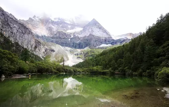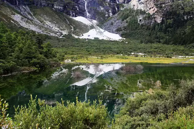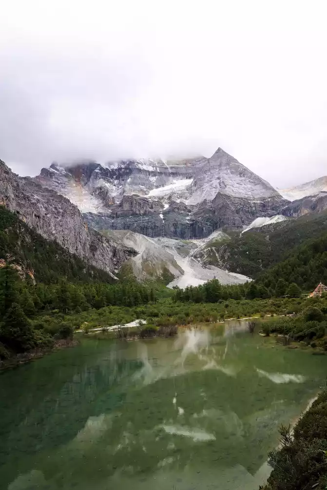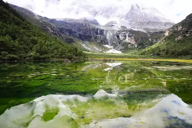reflection of Yangmai Yong Shenshan in the lake taken at Gongga Lake is like God overturning the color palette?