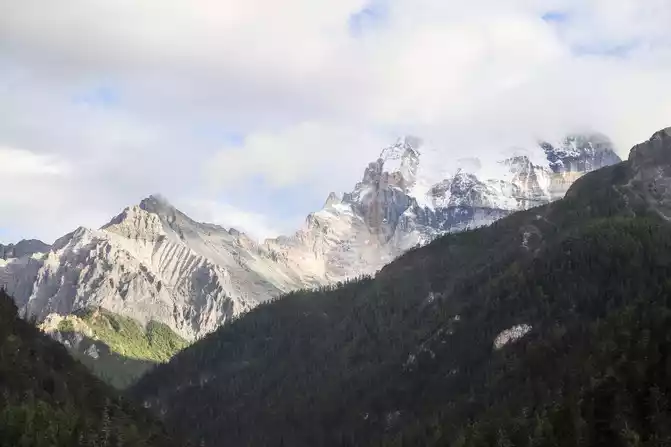 Yangmai Yong Sacred Mountain is the southern peak of the "Three Lords" Snow Mountain, with an altitude of 5,958 meters, ranking first among the "Three Lords" snow mountains in Buddhism. Yang Maiyong's Tibetan meaning is "Manjushri Bodhisattva", and in Buddhism it is the embodiment of wisdom, Xuefeng is like Manjushri using the wisdom in his hand to point straight to the sky, and the ice crystal jade Yang Maiyong proudly stands between heaven and earth.