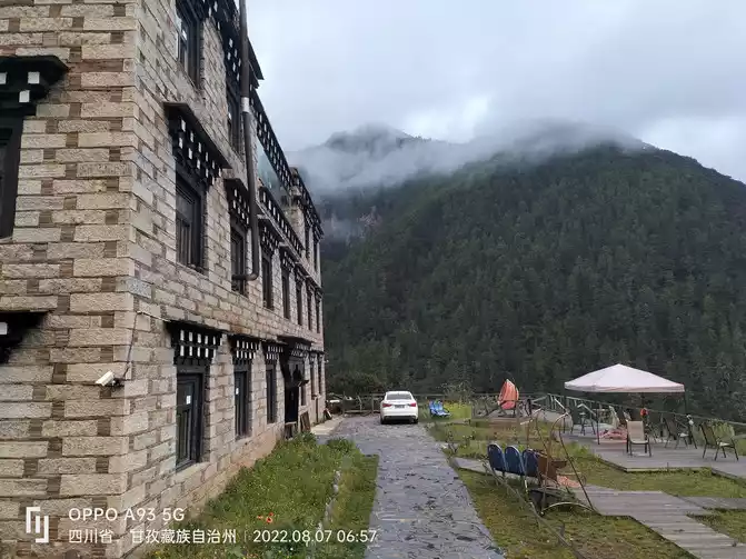 : After returning from Xiannai Ri on the 6th, we stayed at the nature camp at the No. 4 bus point in Aden Village in the scenic area, which is an open area outside the gate of this camp, with leisure tables, chairs, benches and pergolas, overlooking the Xiannai Ri Sacred Mountain.