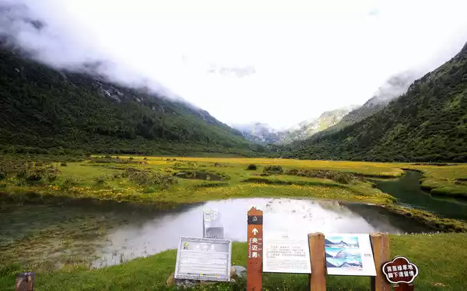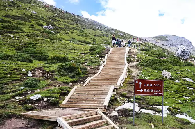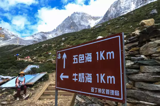 is a sign when going up to the Five Colored Sea, indicating that you will go down from the Five Colored Sea to the Milk Sea, and then go down the mountain to the Luorong Cattle Farm