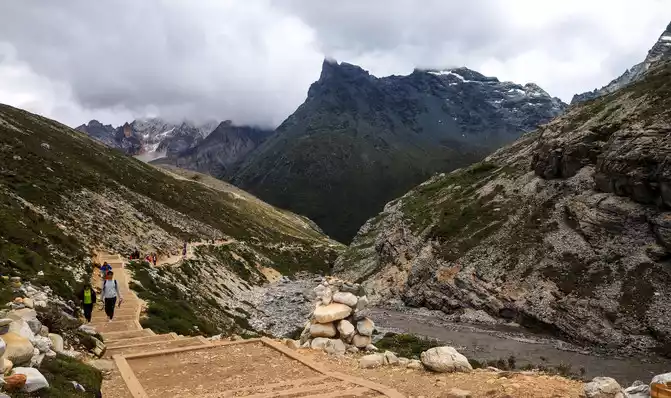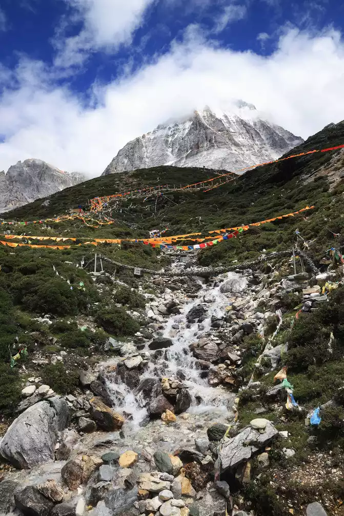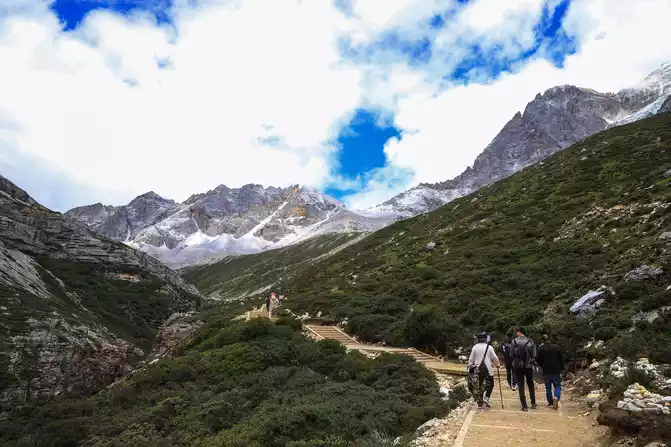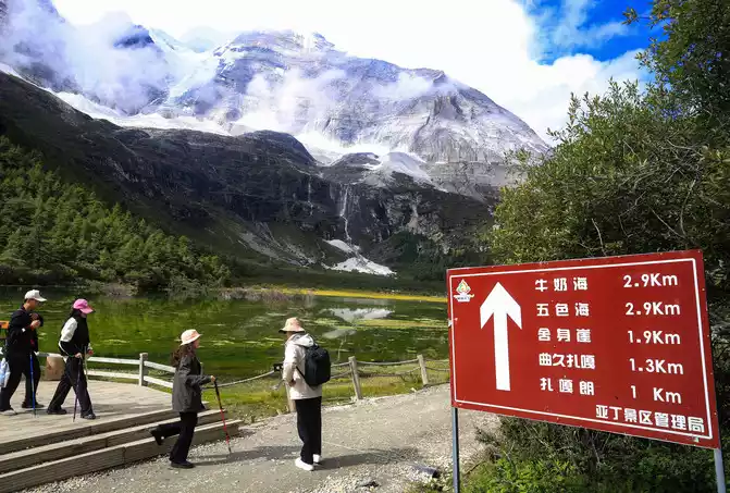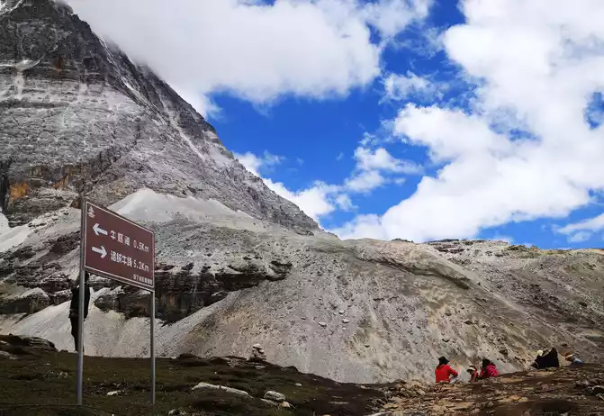 The real test of people starts from this sign, which is relatively close to Yangmaiyong Sacred Mountain, and you can take pictures of Yangmaiyong's majestic posture without any obstruction. But it is also from here that it is gradually going up, and the tour is slowly rising.