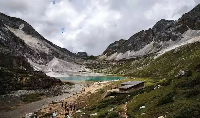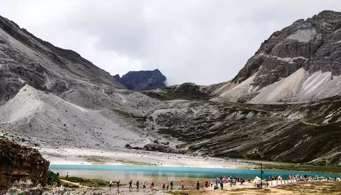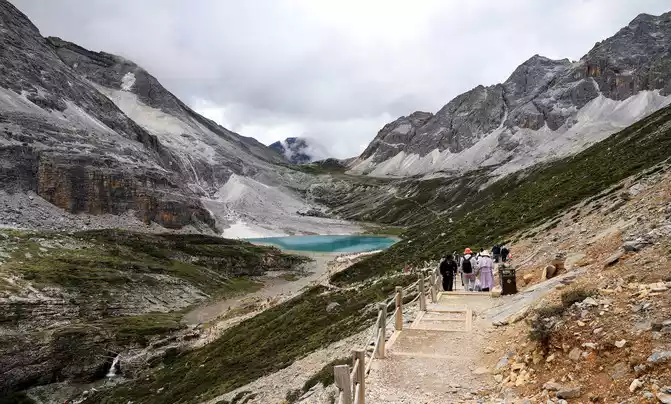 Leaving the Milk Sea, continue the climb to the Five Colors Sea, the highest and final attraction of the trip. Although it is only a short 0.5 kilometers, it is appropriate to go up another 100 meters on the plateau at an altitude of 4,600 meters! Although there is no feeling of "body in hell", it is also a slow step by step with the help of trekking poles, and it also stops from time to time, looks around, and takes pictures of the beautiful scenery of "eyes in heaven" with a camera.