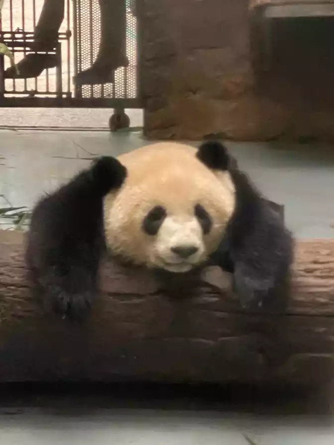 There is still a decent giant panda, look at this one, his face rushes at the tourists, pretending not to be asleep! Do you feel like you're sleepy in class? When I was in school, in the sleepy summer class, how much Qi's father wished to have such dark circles under his eyes as a disguise! Haha