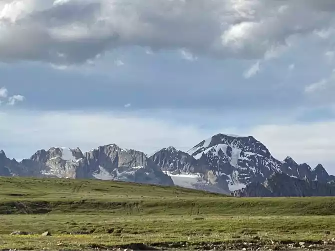 On the way, a snow-capped mountain not far away came into view, and the grass in the village did not grow on this snow-capped mountain, which was in great contrast to the grassy grassland next to it.