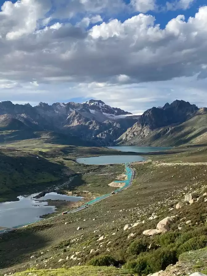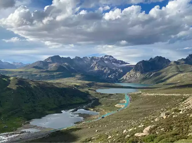 After turning a few corners, the unique scenery of Haizi Mountain appeared in front of you. Haizi Mountain, located between Litang and Daocheng, is named after a large number of seas dotted on the mountain, and the main peak Guoyinri is 5,020 meters above sea level, as many as 1,145 lakes, the most famous are the two sister lakes in front of you, also known as Lover's Lake, like two blue tears of the snow-capped mountains.