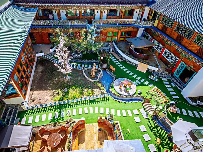 After almost 7 hours of driving , we took the children and stopped at any time on the way, usually 6-8 hours to cross safely Arrive at Yading Village , Daocheng County, stay in the hotel After dinner, climb to the top of the mountain behind the hotel overlooking Daocheng