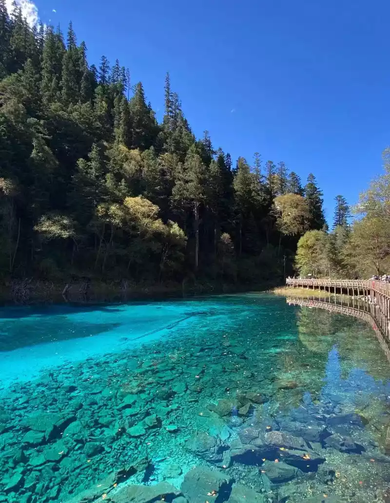 Colorful Pool: In the deepest part of Zezhawagou, it is the smallest sea in Jiuzhaigou, with brilliant colors. Through the pool water, you can see the stone patterns on the rock surface at the bottom of the pool. It is said that if a couple can go down the steps to the edge of the colorful pool, make a wish silently, and climb the 189 steps, they can fall in love for life.