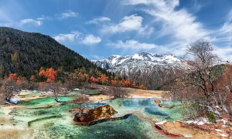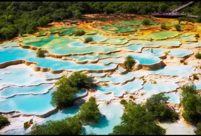 Huanglong Scenic Area is close to Jiuzhaigou (only 100 apart between the two places), and usually everyone will visit these two attractions together. Huanglong is also a well-known world natural heritage and national ecological reserve, located in Songpan County, Aba Tibetan and Qiang Autonomous Prefecture, Sichuan Province, and is the only well-protected plateau wetland in China. Huanglong has a nice name called "Yaochi in the world", because the sea in the wetland will change colorful colors due to the sun and seasons, as if it is not a beautiful scenery in the world.