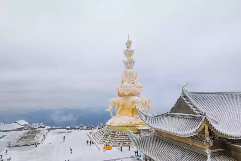 The Golden Dome is the gathering place and essence of Mount Emei's attractions and temples, the 48-meter-high golden statue of the four directions of Puxian stands here, adding a lot of magical colors to Mount Emei, Buddhist culture constitutes the theme of Mount Emei's history and culture, all buildings, statues, ritual instruments, rituals, paintings, etc., all show a strong religious and cultural atmosphere.