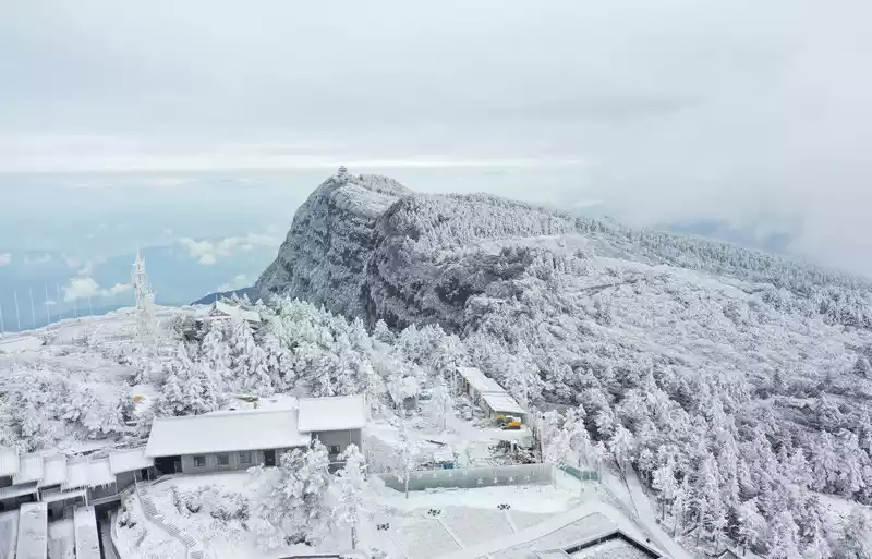 Fluttering snowflakes, undulating mountains, white sea of clouds, and Mount Emei made of powder and jade are like a fairyland !