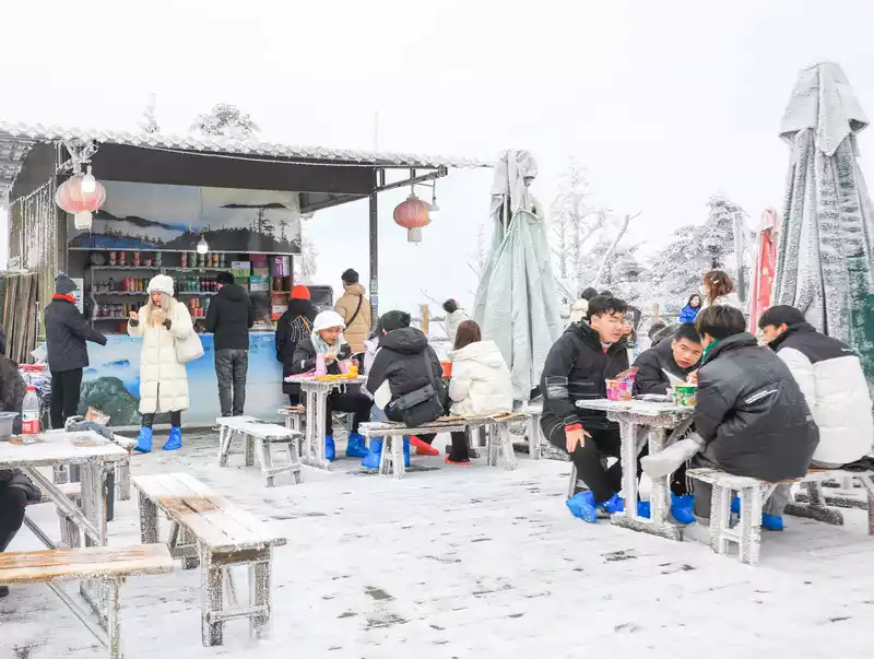 After climbing the Golden Peak, if you are tired and hungry, you can also go to the food forest below to enjoy winter food, with meals and various snacks.