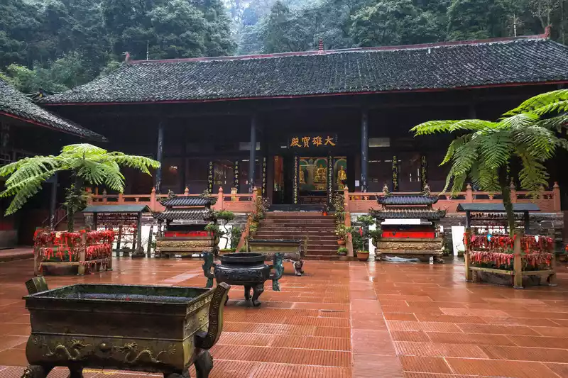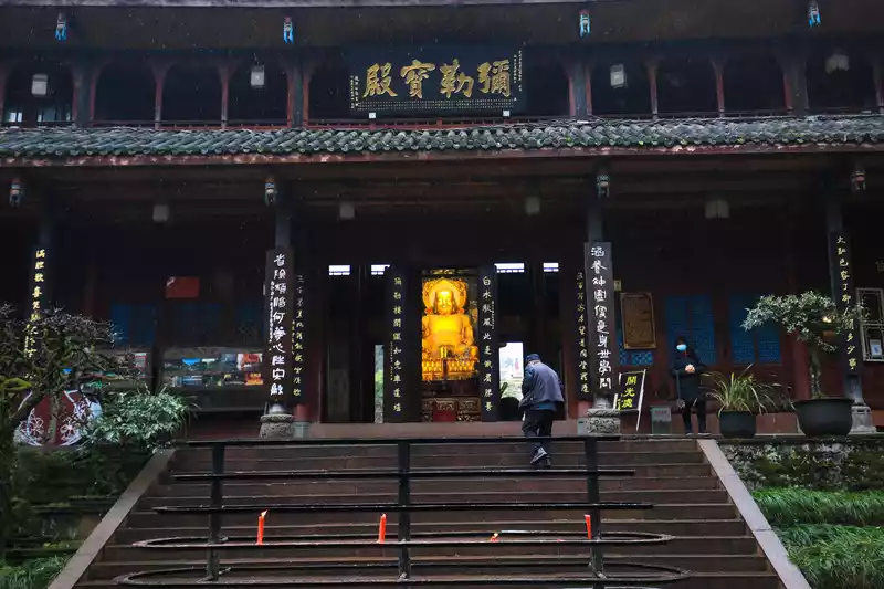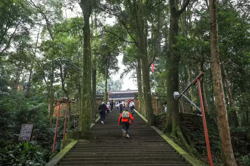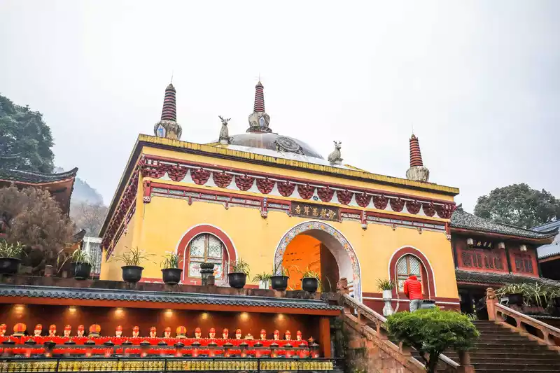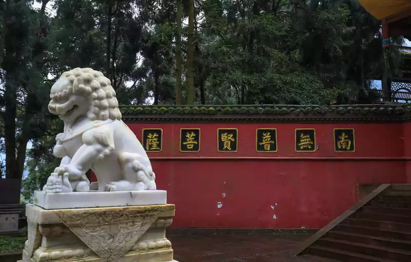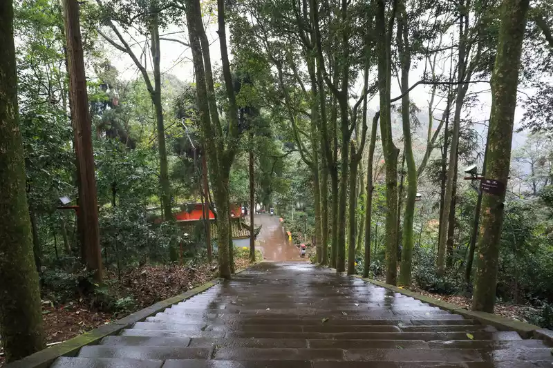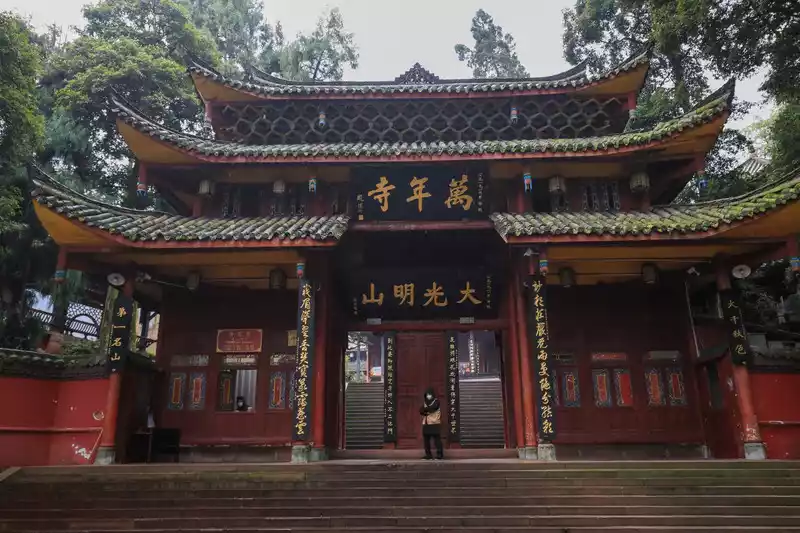 After taking the Wannian Temple ropeway, there is still a short distance from Wannian Temple, along the wet stone steps and path slowly up, the simple red wall is quiet and long, Wannian Temple is the oldest temple in Mount Emei and the first of the eight temples in Mount Emei, so there are many reasons to visit.