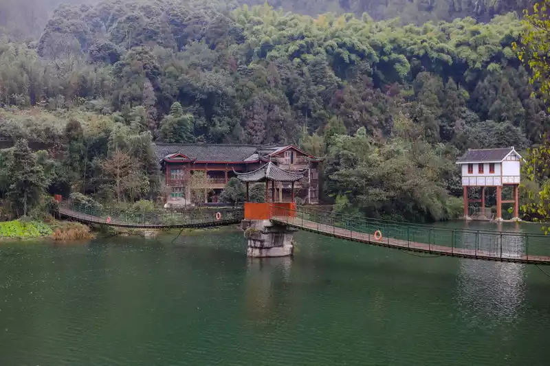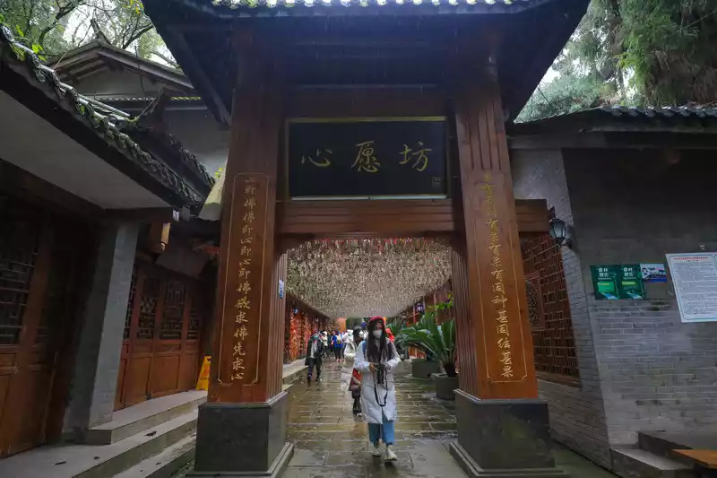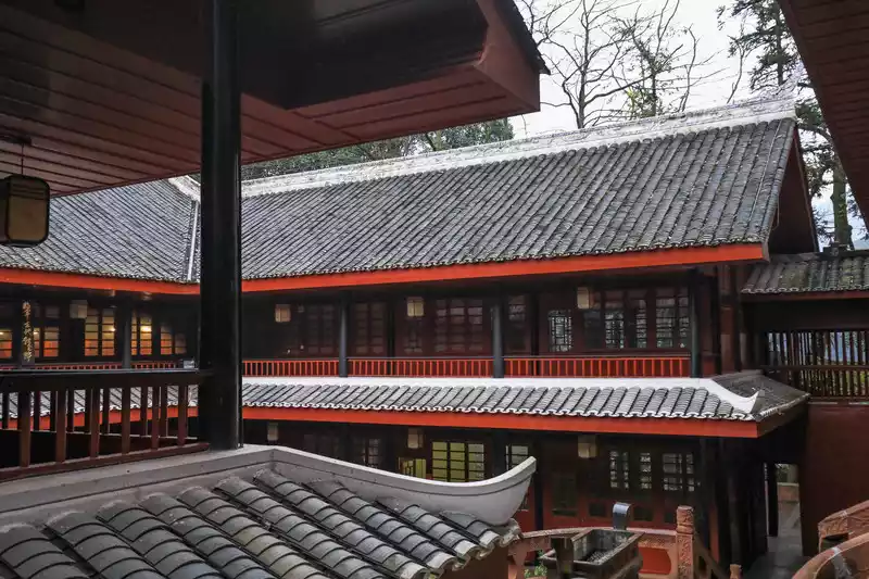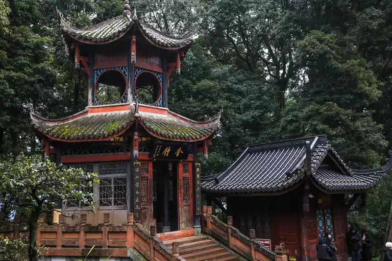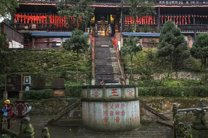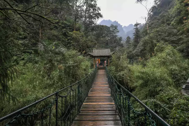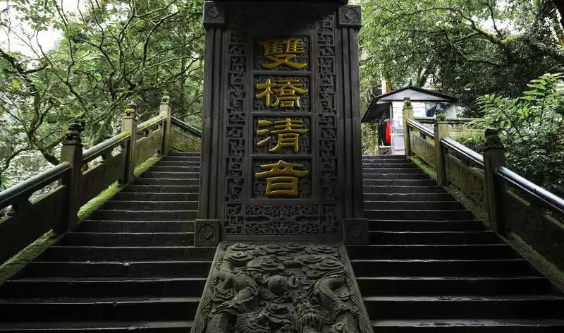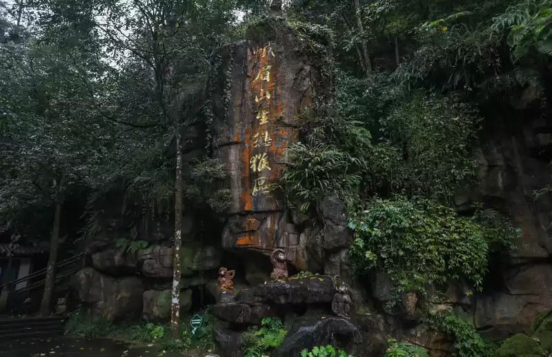 Qingyin Pavilion is one of the eight major temples of Mount Emei, where the mountains and rivers are surrounded by beautiful scenery, the two streams meet in front of the temple, and the stone bridge across the two streams and the sound of gurgling water have created one of the ten views of Mount Emei "Double Bridge Qingyin", and the Jin Dynasty poet Zuo Si once wrote "Why bother with silk and bamboo, the landscape has clear sound". It is a relatively smooth route from here to the ecological monkey area, at an altitude of about 710 meters.