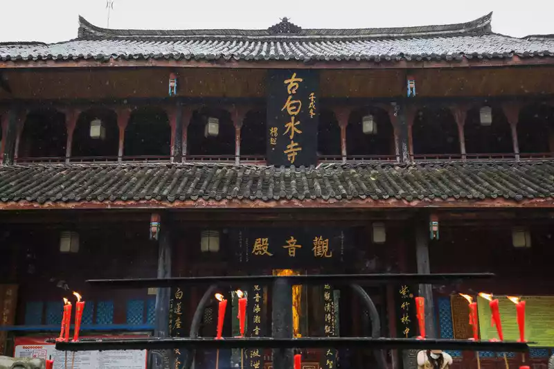 Wannian Temple was founded in the Eastern Jin Dynasty and was renamed Baishui Puxian Temple in the Northern Song Dynasty. During the Ming Wanli period, Ming Shenzong Zhu Yijun gave a plaque "Shengshou Wannian Temple", at its most glorious, the temple had 13 layers, and later fired many times, except for the beamless brick hall, few ancient buildings survived, and there are mountain gates, Maitreya Hall, Prajna Hall, Pilu Hall, Wei'e Hall, Daxiong Hall, etc.