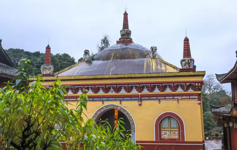 The most distinctive feature of the temple is the beamless brick hall, which is also the only dome-roofed building, the four-square-shaped dome-roofed tower-like structure implies the "round place", the hall enshrines the bronze statue of Puxian cast in the Song Dynasty, and on the walls on all sides, there are ten thousand Buddhas surrounded, which is extremely beautiful. In the twenty-eighth year of the Ming Dynasty (1600), the imperial court gave a lot of money to Mount Emei to build this beamless brick hall.