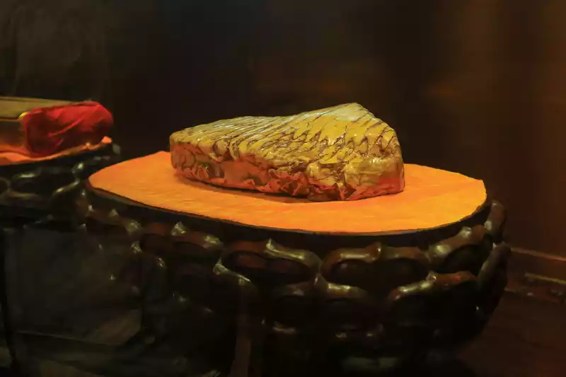This time I came to Wannian Temple, and I was fortunate to see the three treasures of Zhenshan in Emei Mountain, "Ancient Buddha's Tooth, Wanli Golden Seal and Bayeux Sutra", which is said to be never exhibited to the public, especially this "Buddha's tooth", which is 1.28 feet long and weighs 6.5 kg, which was paid by Sri Lankan monks during the Jiajing period of the Ming Dynasty. According to legend, Shakyamuni was cremated after Nirvana, and his whole body became a small relic, with only his teeth intact, which has a history of 200,000 years and is quite precious.