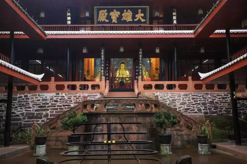 The Baoguo Temple at the foot of the mountain is the first temple to really enter Mount Emei, the Buddhist Association and Buddhist Activity Center of Mount Emei are here, the temple was built in the Ming Wanli period, is one of the eight famous temples in the mountain, formerly known as "Huizongtang", in the forty-second year of Kangxi, the Kangxi Emperor took the meaning of "serving the country and the lord's grace" in the Buddhist scriptures, and the imperial title "Baoguo Temple" plaque has been used to this day.