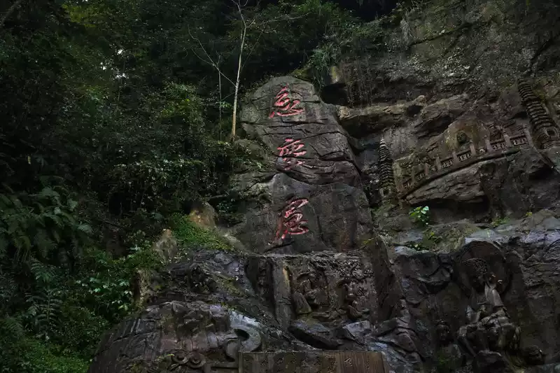 Coming out of Wannian Temple, you will go all the way down the mountain to the direction of Qingyin Pavilion, and you will pass by a white dragon cave in the middle, and there is a couplet in the temple that reads "The white dragon of the ages has passed on a good story, and the seven-fold treasure tree is planted by the clouds", this couplet praises a story of Bai Suzhen's cultivation here, that is, the Qingfeng Cave often mentioned in the "Legend of the New White Lady", the White Dragon Cave is not too big, but the two alders in it are very famous, and it is said that walking around the altar twice will live a hundred years.