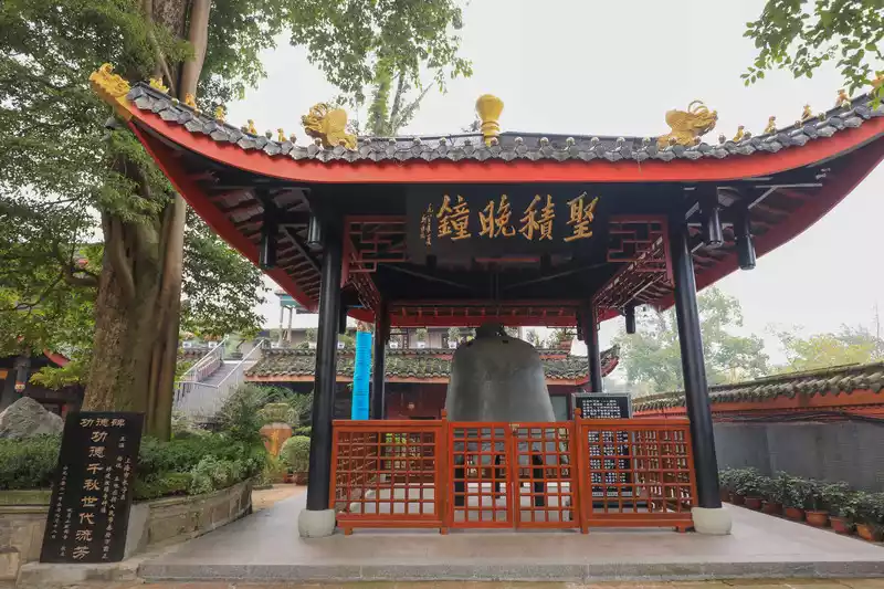 buildings in the temple are simple and elegant, surrounded by green forests, and the mountain gate hangs the three characters "Baoguo Temple" written by the Kangxi Emperor himself, and you can also enjoy the only cultural landscape among the ten views of Emei——" The Holy Evening Bell".