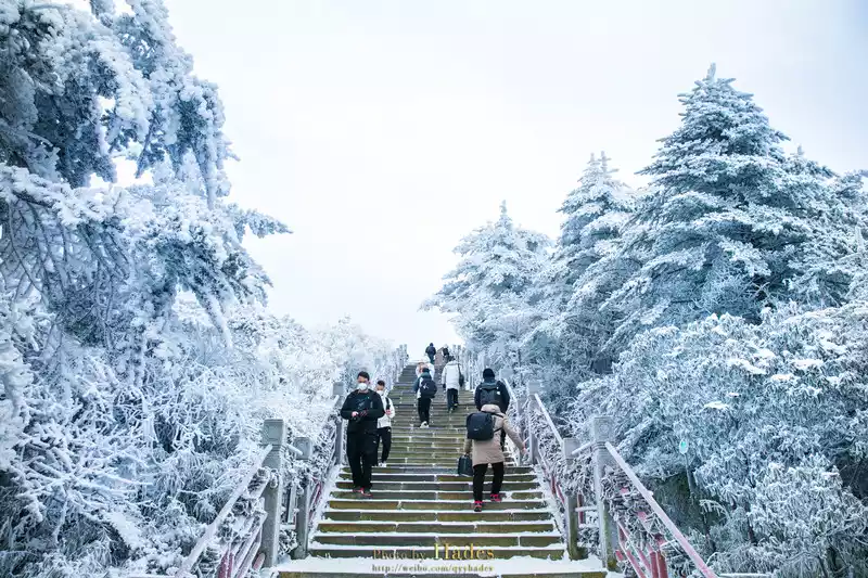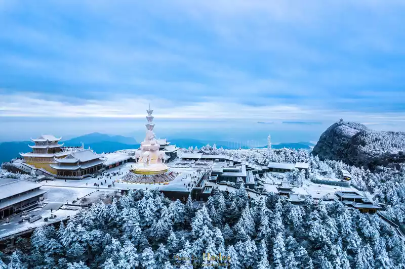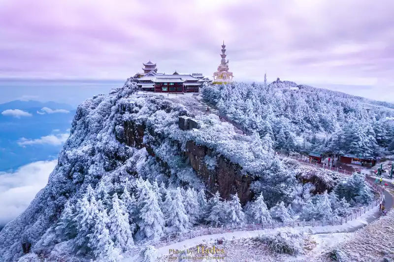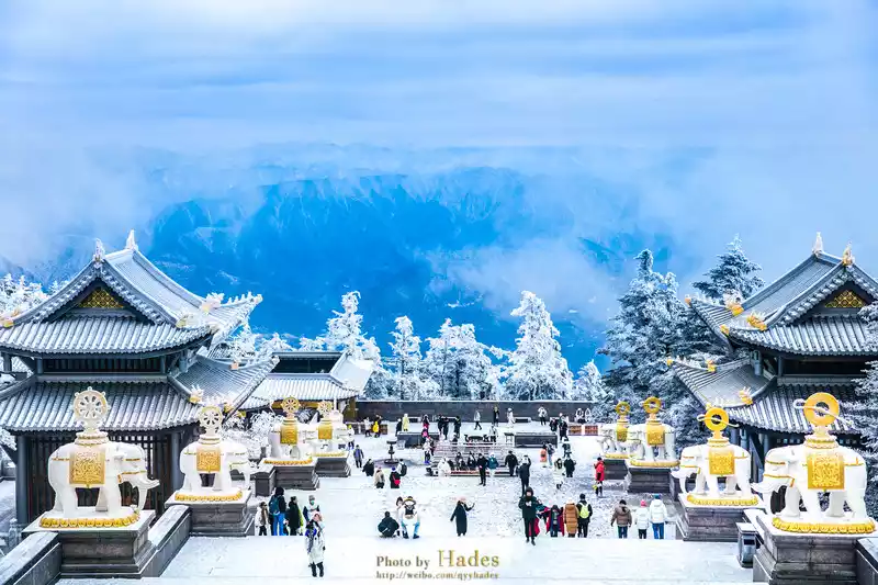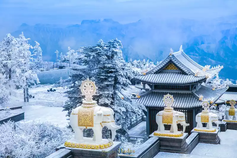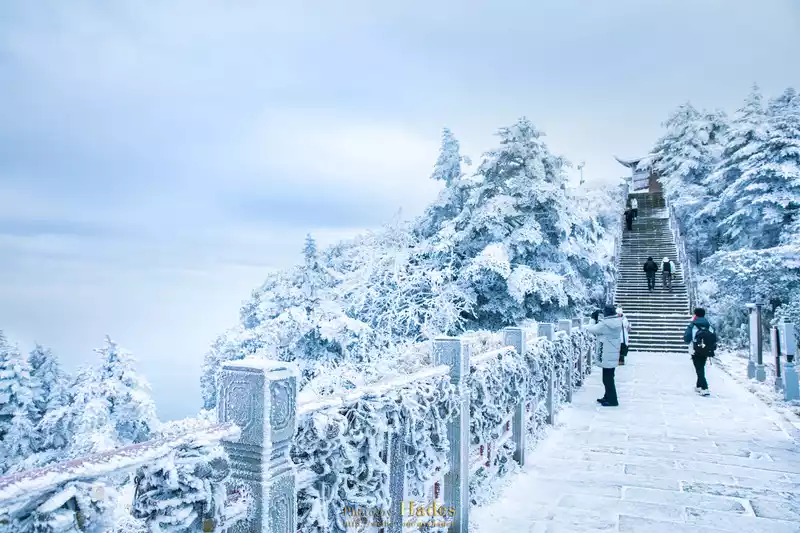 Mount Emei in winter, covered with silver and snow, mist pines, tree hanging, snow, sea of clouds, and sunrise, brings a completely different scenery to this thousand-year-old Buddhist immortal mountain. Walking in it is like stepping into a Buddhist wonderland.