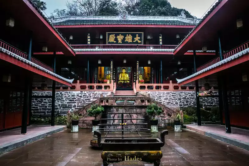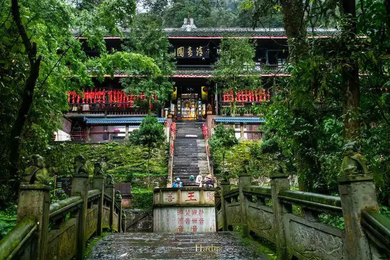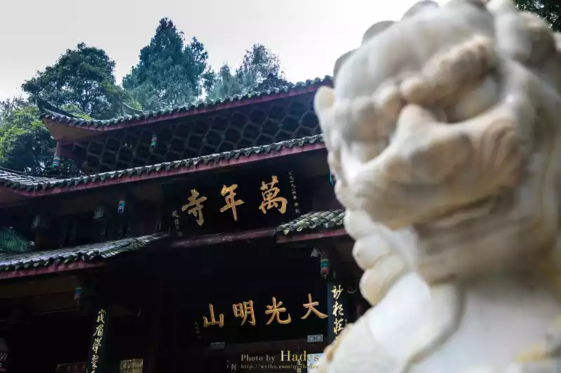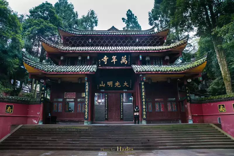 After getting off the ropeway, there is the mountain gate of Wannian Temple. Wannian Temple is located halfway up Mount Emei, if the mountain of Mount Emei is compared to a bodhisattva, then Wannian Temple is located in the heart of the bodhisattva, so when you come to Mount Emei to pray for blessings, most of them come to Wannian Temple.