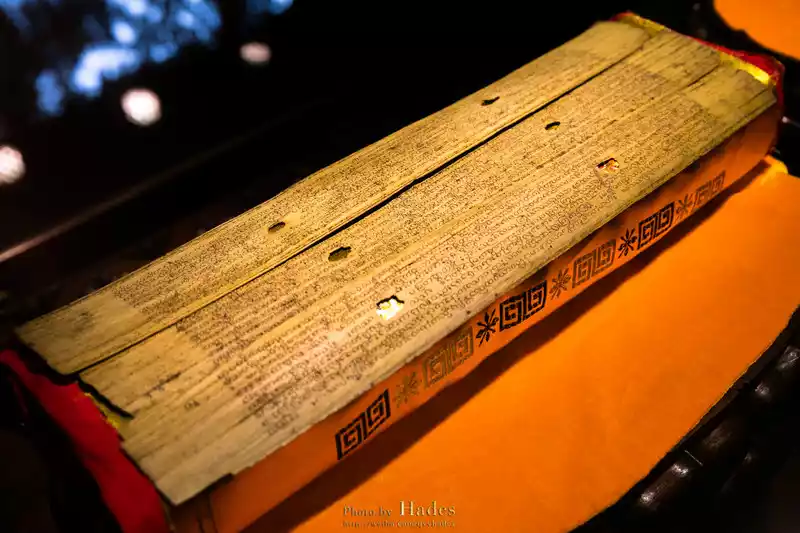 In ancient times, India did not have paper, and monks used Sanskrit to engrave Buddhist scriptures on leaves. The leaves used for scripture carving are mostly Bedolo leaves growing in the Indian rainforest. This leaf has the characteristics of "no column worm, no mildew, and no brokenness", so it is called Baye Leaf Sutra. This Bayeux Sutra is 50 cm long and 12.5 cm wide, with a total of 246 pages, and 69,777 words of the "Buddhist Sutra", which is the entire scripture of the "Zunyi Ahan Sutra". This Bayeux Sutra was given by the king of Burma and is regarded as a treasure of Buddhism.