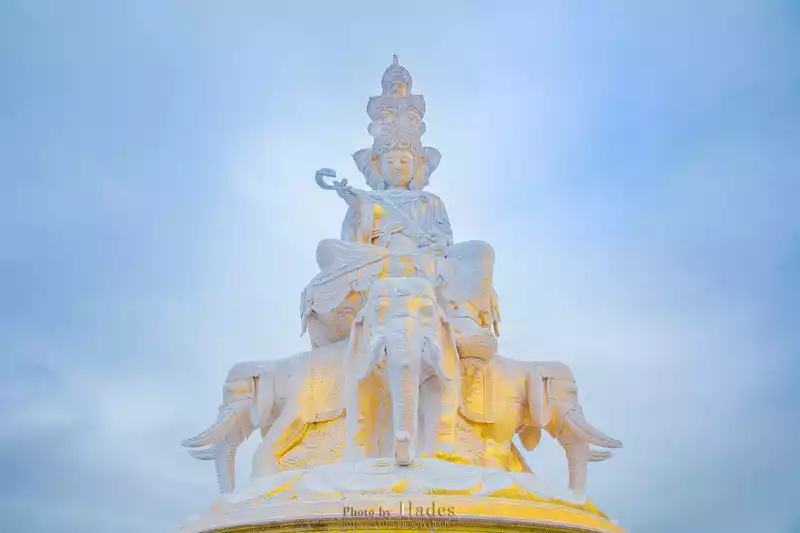 In 2006, the 48-meter-high bronze statue of "Ten Directions Puxian" was completed, which is the most beautiful place on the golden roof.No matter which direction it takes, the bronze statues are gorgeous and majestic.