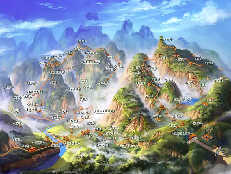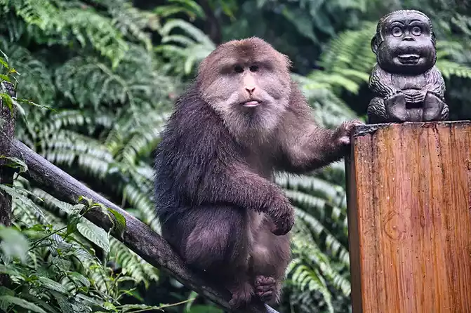 Qingyin Pavilion was formerly known as Niuxin Temple, which was built by monks in the Northern Song Dynasty. During the Hongwu period of the Ming Dynasty, Guangji Zen Master Zen Yin, who had a close relationship with Zhu Yuanzhang, was involved in this, according to the natural style surrounded by mountains and rivers. After that, in order to harmoniously integrate with the pavilions and pavilions in the temple, the word "Qingyin" in the Jin people's "Zhaoyin Poem" was taken and the temple name was changed: Qingyin Pavilion. The terrain here is dangerous, condescending, and imposing. There is really an artistic conception of "natural creation, the unity of nature and man", which is a model of Buddhist temple garden architecture in our country.Ecological Monkey Area Friends who like to get close to small animals should not miss the Ecological Monkey Area, most of the monkeys here have been spoiled by tourists, so they are not afraid of tourists, but for the sake of safety, they must keep a good distance from the monkeys, and tighten their backpacks to avoid being snatched by the monkeys as food.