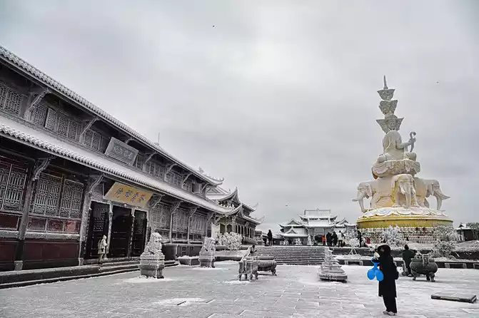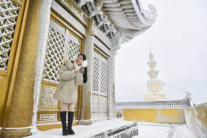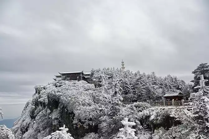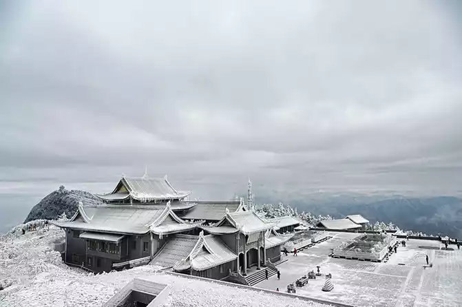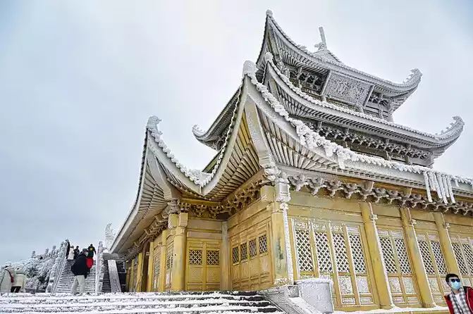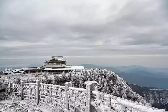 Mount Emei in the snow season has a unique flavor, and the snow-white coat decorates the sacred hall with simplicity and purity, which is more like the purity and flawlessness that everyone yearns for deep in their hearts.