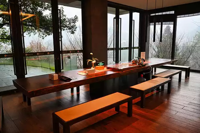 Emei Snow Bud is also known as one of the four famous teas in Sichuan, with a fragrant aroma, mellow taste and refreshing color. When you come to the Emei Mountain base, you must taste the fresh tea here, sit there quietly, and watch the professionals carefully operate each process: hot cups, tea placement, brewing, and pouring tea, as if the simple tea aroma has been given the aging of time, telling the past from ancient times to the present.
