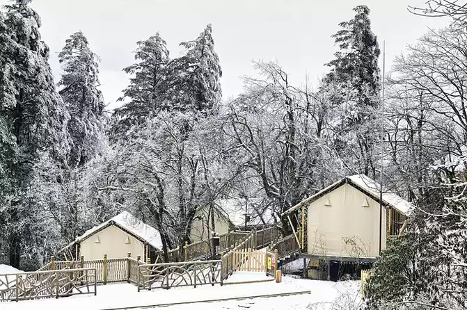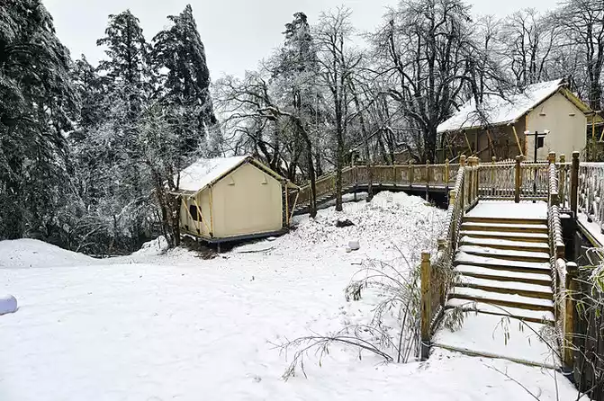 Forest tents, starry sky wooden houses are a variety of ways to live for you to choose from, in the scorching summer is a good place to relax, escape the heat and coolness, camp with friends with beer barbecue with the breeze, watch open-air movies under the starry moon, feel the real forest nature and the joy of the wilderness all the way; On a snowy winter day, this is a place of flying catkins in the sky, a quiet and warm soul, you can see the sky when you open your eyes, you can see the snowy woods when you go out, with the blessing of radiators, heaters, and electric blankets, you don't have to worry about the cold problem at all, just quietly hold a cup of hot tea to sweep away the fatigue in your heart. There is no obstruction, no noise, looking up at the snow-capped mountains, under the soft quilt, sleeping in the mountains and wilderness, waking up in the rime, how can it not be comfortable to live like this!