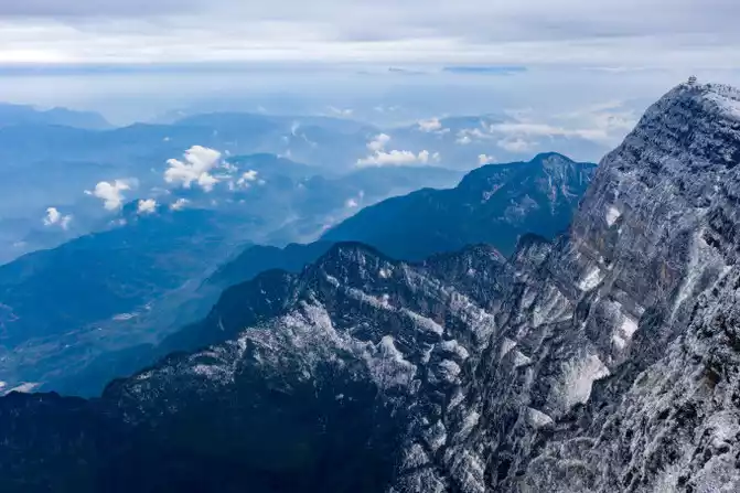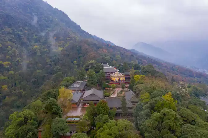 The main peak is divided into the Golden Peak and the Ten Thousand Buddha Peak, and the two mountains face each other from the air, comparable to each other and do not give in to each other.