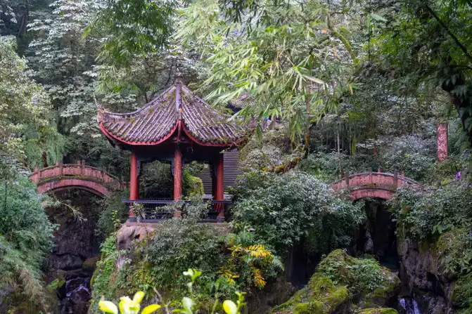 In Qingyin Pavilion, you can see the mountains and waters, smell the fragrance of birds and flowers, hear the clear sound of flowing springs, and touch the pavilions and steles, which is worthy of being "the first scenery of Mount Emei" and makes people linger.