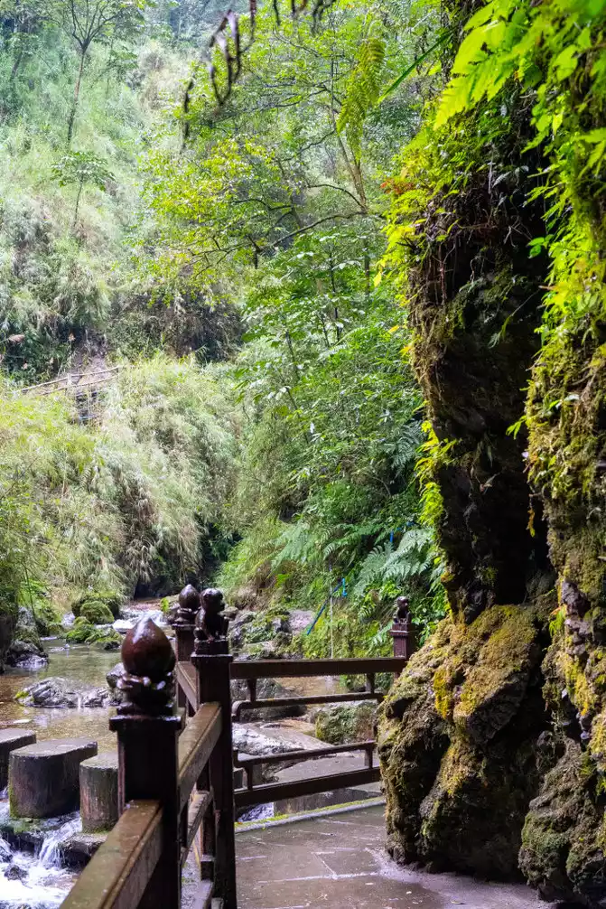 After leaving Wannian Temple, go all the way down the mountain to Qingyin Pavilion, and you will pass by a small cave called White Dragon Cave in the middle.
