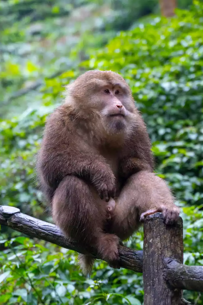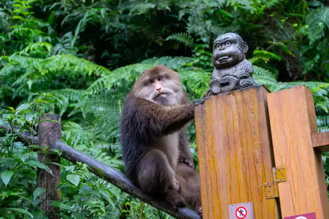 Climbing all the way, we finally arrived at the ecological monkey area of Mount Emei, which is the largest wild monkey area in China. The scientific name of the monkey species of Mount Emei is the Tibetan chief monkey, which belongs to the national second-class protected animal, also known as the short-tailed monkey and the big green monkey, and has lived in the famous Buddhist mountains for a long time, so it is called "monkey layman".